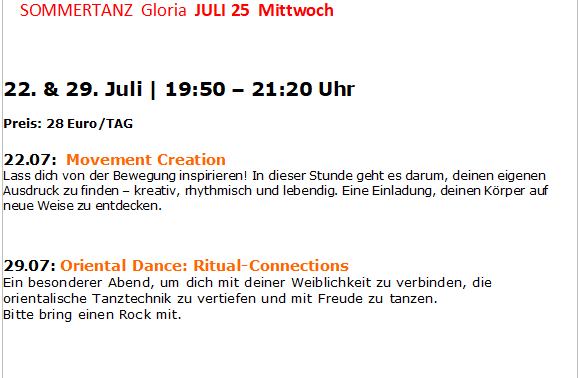 Bauchtanz Anfänger Workshop: So, 17.10.25 1.000-12.00 € 25